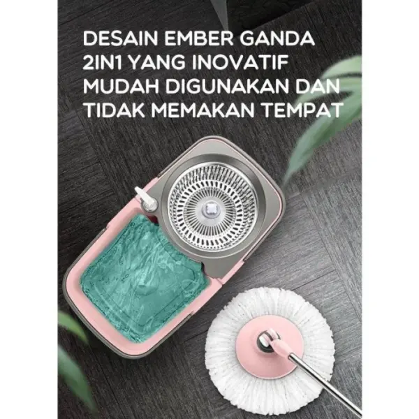Alat pembersih lantai ini mempunyai 1 set tongkat pel dan wadah pel yang membuat produk ini mudah digunakan tanpa memeras menggunakan tangan. Berfungsi untuk membersihkan lantai yang kotor dalam keadaan basah ataupun kering. Hanya cukup sekali swipe langsung bersih dan praktis.