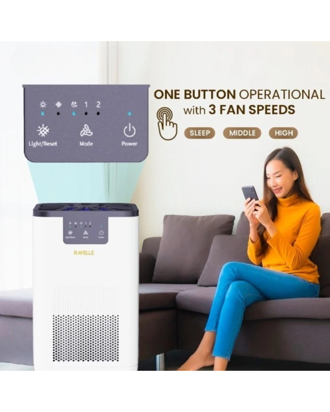 Dapatkan udara segar dan bersih di dalam ruangan dengan RAVELLE Air Purifier Dirancang dengan teknologi canggih untuk meningkatkan kualitas udara, produk ini merupakan pilihan sempurna untuk memastikan udara disekitar Anda tetap bersih dan sehat.