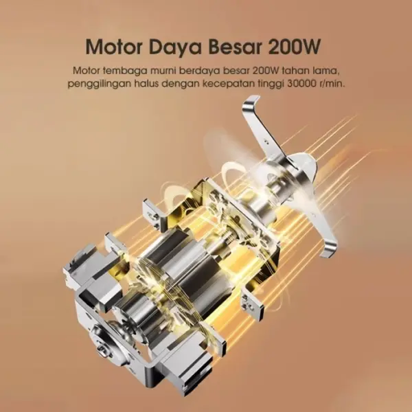 Daya 200 Watt ⚡: Efisien dan bertenaga untuk hasil gilingan yang sempurna.